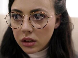 Nerdige brünette Haare, Whitney Wright wird gleich auf die Knie gehen und eine riesige Schwänze lutschen